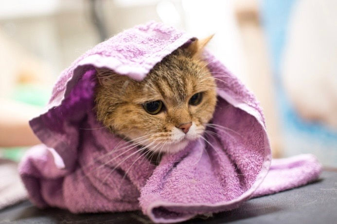 • Maintenez au chaud jusqu'à séchage complet — le chat ne doit pas avoir froid